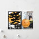 Envía a tus amigos y familiares un saludo de Feliz Halloween con una foto con esta tarjeta postal espeluznante llena de murciélagos volando frente a la luna llena. ¡Añade una foto de tu familia, tú mismo o tu mascota!
