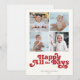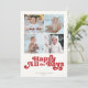 Estas tarjetas de felicitación navideñas planas de 5" x 7" presentan un diseño minimalista con la felicitación, "Feliz Todos los Días", en letras rojas sobre un fondo marfil con espacios para cuatro (4) de tus fotos favoritas, apellido(s) de la familia y año.
