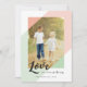 Esta hermosa y ligera tarjeta de vacaciones presenta un diseño geométrico en coral y menta, con un patrón de triángulo en la parte posterior de la tarjeta. Dice "El amor es todo" en carbón. Reemplace la imagen del modelo con una de las suyas para hermosos saludos del Día de San Valentín o Navidad. La imagen de la plantilla está protegida por derechos de autor. Cualquier otro uso está estrictamente prohibido.