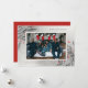 Ilustración original de ramas de pino y bayas rojas en nieve invernal; área de foto de paisaje más grande y texto personalizable y color de fondo.