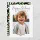 Una moderna tarjeta de fotos de Feliz Navidad con un arco de fotos en la parte delantera. El diseño moderno de la parte trasera incluye ramas y bayas. Para el texto se utiliza una gran fuente moderna de caligrafía.