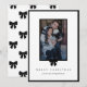 Comparte tu foto familiar o de tu mascota favorita en esta temporada navideña con esta tarjeta de Navidad con un lazo negro moderno. El diseño limpio de la foto con marco negro y el motivo de lazo sutil en la parte posterior son ideales para parejas, familias pequeñas o hogares que aman a las mascotas y prefieren un diseño minimalista y atemporal. La tarjeta es plana (12,7 × 17,8 cm) y totalmente personalizable con tu mensaje, lo que la convierte en un saludo memorable que tus seres queridos guardarán.