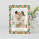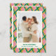 Tarjeta Festiva Foto navideña moderna a cuadros rosa y verde