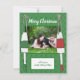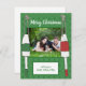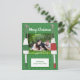Esta tarjeta de Navidad personalizada está lista para ser personalizada con su propia foto, saludo y mensaje de parte con nombres. Esta tarjeta de panel plano tiene un espacio para que agregue una foto con forma rectangular que se establece contra un fondo festivo con patrón de árbol de Navidad verde. La foto está acentuada por dos ilustraciones de estilo pintado de boyas de pesca de madera vintage para un toque náutico.