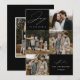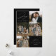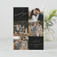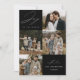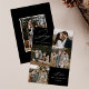 Tarjeta de vacaciones moderna que presenta la frase "Alegría para el mundo" en elegante letra blanca con fondo negro. La parte delantera del diseño presenta 4 de tus fotos familiares favoritas dispuestas en un formato de collage. Personaliza la parte frontal de la tarjeta de vacaciones de varias fotos con el nombre de tu familia y el año. La tarjeta se invierte para mostrar una foto adicional.