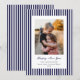 Una clásica tarjeta de vacaciones plana que presenta rayas finas azules y blancas de la marina, un mensaje de 'Feliz Año Nuevo' en una escritura de pluma de tinta tradicional con texto totalmente personalizable debajo, y una foto. La parte posterior tiene el mismo patrón de rayas, pero se puede cambiar fácilmente por una foto si lo prefiere. Disponible en diferentes colores y con diferentes mensajes de vacaciones en mi tienda.