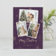 Personalizado púrpura y dorado Cartas de fotos de Feliz Navidad. Personalice fácilmente con sus imágenes y texto.