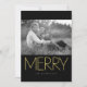 Tarjeta de vacaciones Purpurinoso MERRY Black Esta temporada de vacaciones envía saludos que brillan y brillan. Agrega tu propio mensaje e incluye el nombre de todos. ¿Más para compartir? Hay espacio para fotos adicionales y deseos en la parte de atrás. NOTA: Este diseño no incluye Relieve metalizado oro real ni purpurina. Es una imagen de alta calidad para simular Relieve metalizado de oro o purpurina.