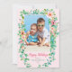 Tarjeta Festiva Foto Tropical Floral Rosa y Verde