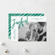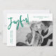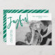 Envíe alegría a amigos y familiares con una tarjeta de vacaciones Simplemente alegre de Late Bloom Paperie! La moderna tarjeta navideña presenta "Joyful" en un guión verde de brocha con letras a mano. Personalice la parte delantera de la tarjeta agregando su foto, saludo personalizado, nombre de familia y el año. La tarjeta se invierte para mostrar un patrón de rayas diagonales verde y blanco.
