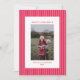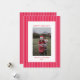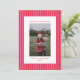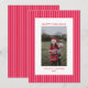 Comparte la alegría de las fiestas con esta tarjeta de Navidad con foto familiar a rayas rojas clásicas. Con llamativas rayas rojas y rosadas enmarcando la foto de tu familia, este diseño ofrece un aspecto festivo y atemporal. El elegante diseño te permite personalizarlo con el nombre de tu familia y el año, lo que lo convierte en un recuerdo perfecto para tus seres queridos. Con su ambiente navideño moderno y clásico a la vez, esta tarjeta es ideal para enviar cálidos deseos y crear recuerdos duraderos en esta temporada festiva.