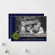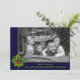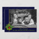 Su foto en color se convertirá automáticamente en una imagen elegante en blanco y negro cuando se sube a este moderno diseño de tarjeta de Navidades fotográficos limpios. Tu foto familiar llenando la cara de la tarjeta detrás de un marco azul y dorado resaltado con un pino y una toga hueca. La banda inferior sostiene los nombres y los Navidades saludando con una letra verde suave. Dorado resplandeciente Feliz Navidad en la espalda contra un azul oscuro de los Navidades.