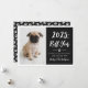 Una graciosa tarjeta de fotos navideña con tema de Año de Ruff 2022 incluye una imagen de tu cachorro junto a un texto de escritura moderno escrito a mano y un texto personalizado que puedes personalizar con un mensaje de vacaciones personalizado y de año nuevo, el nombre de tu perro mascota y tu apellido / familia. El diseño simple de tipografía minimalista incluye un fondo negro y adorables acentos de impresión de pata.