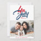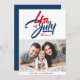 ¡Feliz Día de la Independencia! Envíe sus mejores deseos con esta tarjeta de foto de personalizable Feliz Día de la Independencia. Presenta caligrafía moderna y tipografía simple. Personalice agregando sus detalles. Esta tarjeta del 4 de julio está disponible en varias cajas.