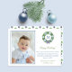 Tarjeta fotográfica Smart Happy Holidays con espacio para un monograma de una sola letra y una foto familiar. Los elementos de acuarela frontal (corona) y posterior (árbol topiario) fueron pintados originalmente a mano por mí en acuarelas sobre papel 100% de algodón antes de ser escaneados y arreglados/estilizados digitalmente.