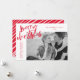 ¡Envíe alegría a amigos y familiares con una tarjeta de festividad Simply Merry de Late Bloom Paperie! La moderna tarjeta navideña incluye "Feliz Navidad" en un guión con letras rojas. Personalice la parte delantera de la tarjeta agregando su foto, saludo personalizado, nombre de familia y el año. La tarjeta se invierte para mostrar un patrón de rayas diagonales rojas y blancas.