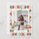 Añada un giro juguetón a sus saludos de vacaciones con nuestra audaz y moderna tarjeta de fotos de Navidad de Nutcracker. Con nuestros ilustraciones originales dibujados a mano y un impresionante patrón de estilo de diamante, este diseño único enmarca tu foto favorita en una divertida mezcla de formas y estilo festivo. Dos encantadoras petardos se paran orgullosamente en cada esquina de la foto central, mientras que un arco de rayas verdes a mano agrega un toque caprichoso, enmarcando maravillosamente el alegre saludo de las vacaciones: "Festividad de la felicidad". Esta carta, elaborada en una vibrante paleta de colores de tendencia (verde profundo, rojo clásico, amarillo dorado, menta, violeta y rosa suave), aporta una energía fresca y artística a tus tradiciones de temporada. Personalízalo con el nombre de tu familia y el año, artísticamente colocado en las esquinas superior izquierda y inferior derecha para un ambiente moderno y personalizado. La parte trasera de la tarjeta continúa la historia festiva con un diseño coordinado con patrones que presenta nuestros elementos dibujados a mano —petardos, violines, tambores, cintas y notas musicales— creando un acabado cohesivo y elegante. Una combinación perfecta de tradición y tendencia, esta tarjeta Nutcracker es una manera alegre de compartir la magia navideña de tu familia con estilo. Diseño a mano y ilustracion por ©Moodthology Papery