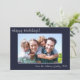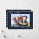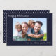 Fotografía Modern Simple Familia Feliz Vacaciones diseño azul marino. Cambie la foto y el texto de 1 haciendo clic en Personalizar arriba. La tarjeta contiene una foto, un saludo y una línea de firma en un divertido guión escrito a mano en blanco.