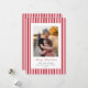 Una clásica tarjeta de vacaciones plana con rayas rojas y blancas delgadas, un mensaje de "Feliz Navidad" en una fuente de pluma de tinta tradicional con texto totalmente personalizable debajo, y una foto. La parte posterior tiene el mismo patrón de rayas, pero se puede cambiar fácilmente por una foto si lo prefiere. Disponible en diferentes colores y con diferentes mensajes navideños en mi tienda.