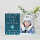 “Paz, alegría y amor”. Una divertida y juguetona ilustración de copo de nieve y tipografía moderna sobre un fondo de mármol azul turquesa profundo y rico en acuarela te ayuda a recibir la temporada navideña, junto con la foto personalizada que elijas. El foil de turquesa falso y los puntos de confeti blancos enmarcan la tarjeta. Siente el calor y la alegría de las fiestas siempre que envíes esta impresionante y gráfica tarjeta de felicitación plana y personalizada. También están disponibles sobres, pegatinas, bolsas, papel de regalo, bandejas, decoración del hogar y más que combinan. ¡Envía esto a alguien especial!