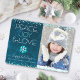 Tarjeta Festiva Fotos Azules Paz Alegría Amor Copo de Nieve Modern