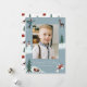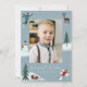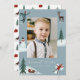 Una linda tarjeta de vacaciones con tu foto rodeada de ilustraciones de una persona tirando un bola de nieve, un muñeco de nieve, pinos, un ciervo, un trineo de regalos y una persona haciendo un ángel de nieve. Los "Deseos más cálidos" se muestran en un guión con letras blancas y el nombre de su familia se muestra a continuación.