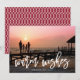 Comparte tu foto de vacaciones favorita esta temporada navideña con estas elegantes tarjetas de fotos navideñas, que presentan un texto superpuesto en blanco con letra a mano que dice "deseos cálidos". Personaliza con tu nombre(s), saludo y/o año. Las tarjetas tienen un reverso con un patrón geométrico sutil en rojo granate y blanco.