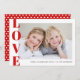 Una simple y clásica tarjeta de el día de San Valentín fotográfico con amor rojo apilado sobre un fondo blanco limpio y moderno. El respaldo de patrón que lo acompaña tiene un patrón de corazón repetido en rojo y blanco. Las tarjetas de el día de San Valentín son la manera perfecta de enviar amor y compensar la pérdida de las vacaciones de navidades y tarjetas de años nuevos. A veces es difícil lograr que todo se haga y las cosas por lo general se han ralentizado por el El día de San Valentín y se puede planear enviar tarjetas un poco más fácil. Es inesperado cuando aparecen en el correo haciéndolas extra especiales. Además, no tienen todas esas tarjetas de vacaciones con las que competir, por lo que realmente destacan.