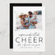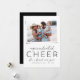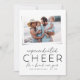 En un año en el que todo es "sin precedentes", puedes enviar vítores sin precedentes por un nuevo año. Esta foto del diseño de la tarjeta Happy New Year incluye divertida tipografía en blanco y negro y un moderno efecto de sombra fotográfica. La parte posterior es negra con un patrón de guión, pero se puede ajustar el color haciendo clic en "Personalizar más adelante".