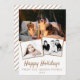 Tarjeta de foto personalizada de vacaciones elegante y linda con collage de fotos - inserte tres de sus fotos favoritas de vacaciones familiares o de mascotas en la plantilla. El texto Felices Fiestas está en una fuente moderna y trendy - personalice el texto. Desee felices fiestas - Navidad y Año Nuevo - a sus amigos y familiares.