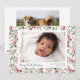 Esta dulce y clásica tarjeta de Navidad destaca la primera Navidad de su recién nacido con una foto sobre un fondo festivo de acuarela de bayas y vegetación. Personalice el texto de la parte frontal y posterior para una tarjeta de Navidad verdaderamente única. Un recuerdo perfecto para familiares y amigos. Crédito de la foto: Michal Robak