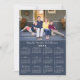 Desee a sus amigos y familia un Feliz Año Nuevo con una tarjeta de vacaciones personalizada que incluya su foto y saludo en el calendario 2026 al frente y otra foto al dorso. Reemplace las fotos de ejemplo y el texto de la barra lateral. El texto del personalizado está en una fuente de escritura manuscrita blanca. Debajo hay un calendario blanco fácil de leer sobre un fondo azul marino. Puede eliminar el logotipo de Zazzle en la parte posterior de la barra lateral. Derechos reservados de diseño de tarjetas y calendarios © Claire E. Skinner. Todos Los Derechos Reservados. Fotografía © Storytree Studios, Stanford, CA