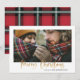 Efecto dorado guión elegante alegría navidad con la coordinación del diseño del tartán de verificación rojo y verde. Espacio para un solo diseño fotográfico.