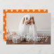 Comparte la alegría de Halloween con esta adorable tarjeta de Halloween con temática de mascota que muestra la foto horizontal de tu mascota y la frase "Pawsitivamente Spooky" en un guión escrito a mano en blanco. Personalice el frente con el saludo de su personalizado, el nombre de su familia y el año para que le den un toque más sincero. En el reverso se muestra un naranja lúdico y un patrón de huellas de pata blanca, lo que hace que este diseño sea perfecto para enviar saludos festivos de mascota de Halloween a amigos y familiares.