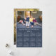 Deséenle a sus amigos y familiares un Feliz Año Nuevo con una tarjeta de vacaciones personalizada que incluya su foto y saludo sobre un calendario 2020 en la parte delantera y otra foto en la parte trasera. Reemplace las fotos de ejemplo y el texto en la barra lateral. El texto del personalizado está en una fuente de escritura blanca. Debajo hay un calendario blanco de 2020 fácil de leer sobre un fondo azul marino.