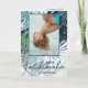 Los helechos y el follaje botánicos tropicales en azul, turquesa y verde acentúan la foto en la parte frontal de estas tarjetas de Navidad dobladas con Mele Kalikimaka en letra elegante. Su saludo personal y nombres están impresos en el interior.
