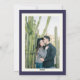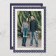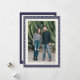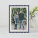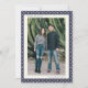Este moderno diseño de Hanukkah presenta un borde geométrico azul marino inspirado en patrones de mediados de siglo. La parte delantera muestra una gran foto enmarcada con marfil fresco y tipografía limpia. La parte trasera incluye espacio para una foto adicional y un mensaje de vacaciones personalizados.
