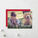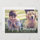 Tarjeta de saludo de vacaciones moderna con "Feliz Navidad" en un elegante guión blanco sobre la foto