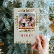 Personalizado económico imprimió tarjetas fotográficas de vacaciones con plantillas sencillas para la personalización. Este diseño festivo cuenta con un elegante borde floral acuático de hojas huecas y flores de poinsettia en tonos rojos, verdes y burdeos sobre un falso fondo de lino en burlap. Personalízalo con tus fotos y texto personalizado. El lado inverso tiene un saludo de vacaciones personalizado o usa el espacio para agregar fotos adicionales. Utilice las herramientas de diseño para elegir cualquier color de fondo, editar los tipos de letra y los colores del texto, cargar más fotos y crear un diseño de tarjeta fotográfica de vacaciones de primera clase.