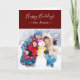 La tarjeta de felicitación navideña Frosty snow white family photo happy holidays es perfecta para una celebración festiva. El diseño presenta una elegante fuente de caligrafía en blanco.