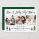 Tarjeta Festiva Fun Calligraphy Holly Jolly Navidades Green Pines