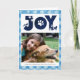 Celebra la festividad con esta moda, linda y encantadora tarjeta de fotos minimalista con tu mascota mostrando las garras de perrito " JOY " provocando el patrón de copos de nieve en fondo azul bebé. Debajo de la foto se muestra el mensaje de bienvenida de su personalizado y sus nombres y nombres de perro en la tipografía moderna. ¡Felices Fiestas y Feliz Año Nuevo!