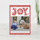 Celebra la festividad con esta moda, linda y encantadora tarjeta de fotos minimalista con tu mascota mostrando las garras de perrito " JOY " en brillante patrón de copos de nieve con fondo rojo. Debajo de la foto se muestra el mensaje de bienvenida de su personalizado y sus nombres y nombres de perro en la tipografía moderna. ¡Felices Fiestas y Feliz Año Nuevo!