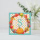 Tarjeta Festiva Fun fall calabaza wreath polka dot verde azulado n