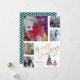 Tarjeta de felicitaciones navideñas moderna y sencilla. Feliz texto navideño es en falso Relieve metalizado dorado, con 9 colocaciones fotográficas y lindo, divertido árbol de Navidad y presente. Personalizar con su información única.