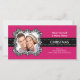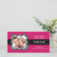 Nuestra elegante y divertida tarjeta de fotos en forma de cebra negra con cuadros de navidad está situada en un fondo rosado caliente. La tarjeta perfecta para compartir fotos familiares con amigos y familiares esta temporada de vacaciones. ¡Añade tu texto y foto y estás todo listo! Visite nuestras tiendas en www.celebrateitinvites.com y www.festeitholidays para toda nuestra línea de vacaciones! ©Mujka Design Inc