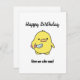 ¿Buscando una manera adorable de desear a tu amigo un feliz cumpleaños? Esta tarjeta divertida es la combinación perfecta de tierno y agudo, con un adorable pato y un sentimento irónico y divertido. Difunde algo de alegría en su día especial con este saludo de cumpleaños único.