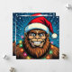 A funny sasquatch Christmas card with a cute yeti pun on the back. Comic book style pop art bigfoot smiling with a Santa and Christmas lights on.