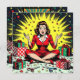 A funny unique Christmas card that has a comic book pop art style retro mid-century woman trying to panic gift wrap all the presents on Christmas Eve. A hilarious message on the back about coffee, Christmas and panicking that you can personalize if wanted.