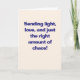 Celebra el Festival de las Luces con un toque extra. Esta humorística tarjeta de Hanukkah dice "¡Enviando luz, amor y la cantidad justa de caos!" en negrita azul. Un saludo moderno y juguetón, ideal para amigos, familia y familia escogida. El mensaje interno es totalmente personalizable.